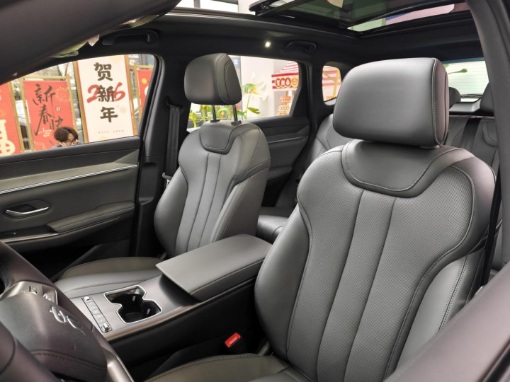 坐进驾驶舱,那个怀挡设计确实很显高级,中控台变得无比清爽,手机、水杯随手可放,拿取特别顺手。我的眼睛一直盯着那个15.6英寸的超大中控屏,显示效果细腻,操作起来很跟手。销售在一旁演示了语音控制,车机响应很快指令操作很流畅。销售还特地指了指车顶:“全系标配全景天窗,带遮阳帘的。”